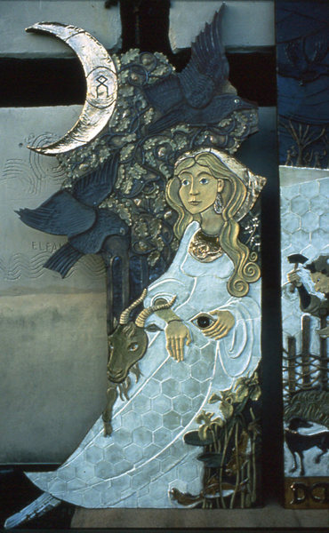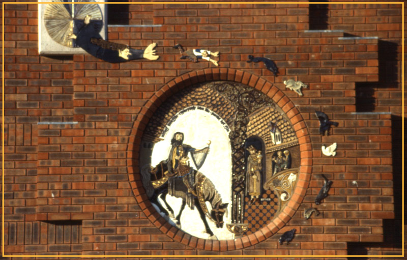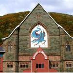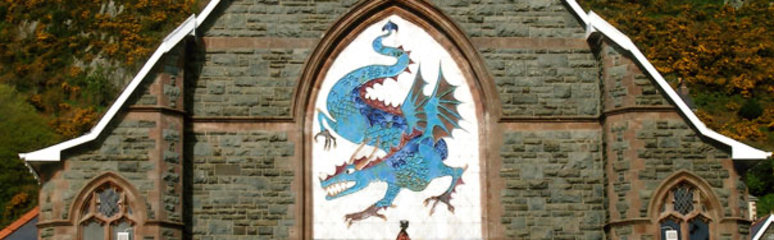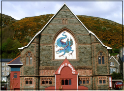 This magnificently blue dragon was designed to stand out boldly against the delicious stonework of the theatre.