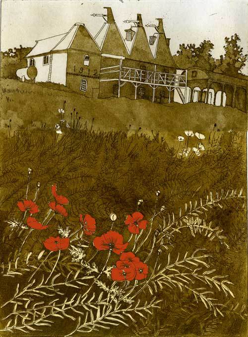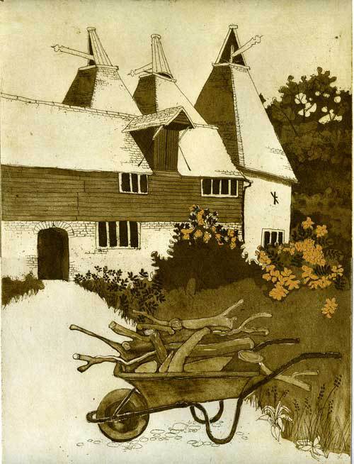 You may know this building, now rather changed from its Oast House identity ... my etching was done a few years back, and seeks to capture its beauty as a long-standing agricultural landmark.